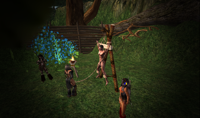 Als ich wieder wach wurde, lag ich nackt und gefesselt auf den Boden. "Das passiert, wenn man unserer En vor die Füsse spuckt." Ich wusste zwar nicht was En bedeutet, auf jeden Fall tat mir der Kopf gewaltig weh. Ich spürte nur ein zerren und ziehen und einen tritt in den Hintern um aufzustehen. Ich war noch so benommen von der Bewusstlosigkeit, das ich mich einfach so mitziehen lies ohne viel Gegenwehr. Sie verbanden mir die Augen, damit ich nicht den Eingang ihres Lagers sehen konnte. Ich wurde hin und her geschuppt und an mir wurde gezerrt. Meine Hände und Füße wurden irgendwo festgebunden und dann merkte ich nur wie ich irgendwo hochgezogen wurde. Meine Arme und Beine wurden auseinander gezogen, meine Schultern schmerzten. Dann wurde mir die Augenbinde wieder abgenommen.